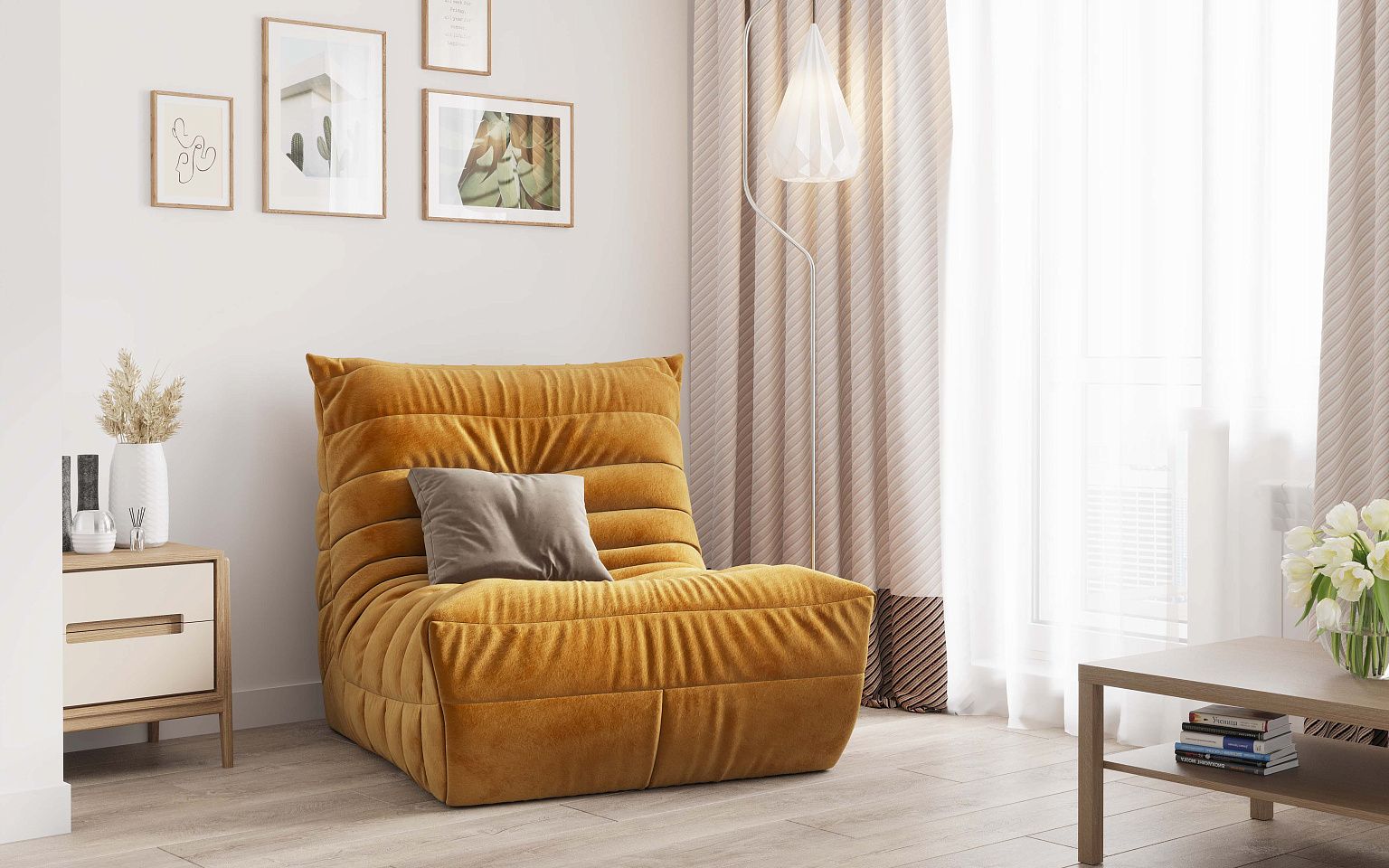 Современный дизайн, невероятный комфорт и высокое качество материалов - это бескаркасное одноместное кресло ДеФранс.