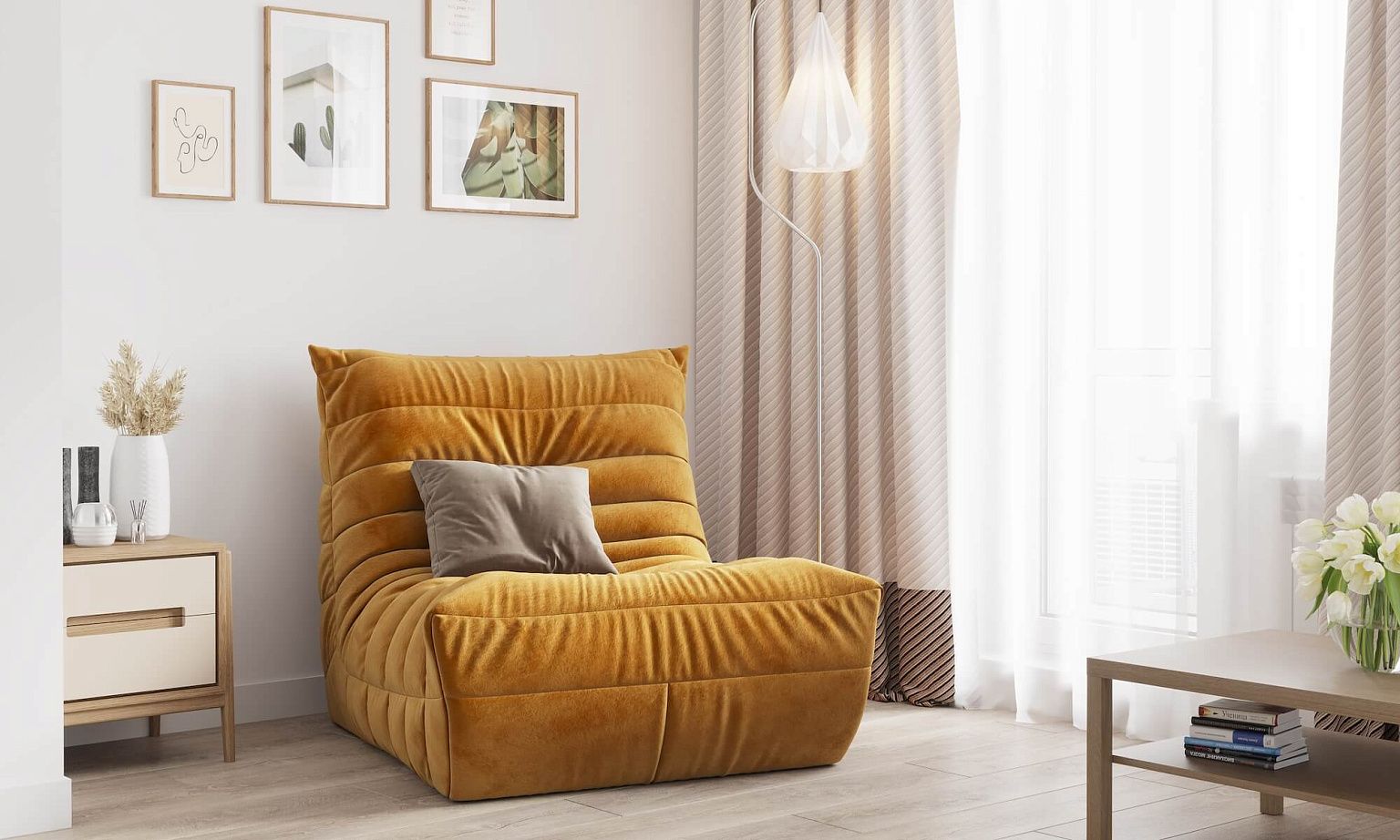 Современный дизайн, невероятный комфорт и высокое качество материалов - это бескаркасное одноместное кресло ДеФранс.