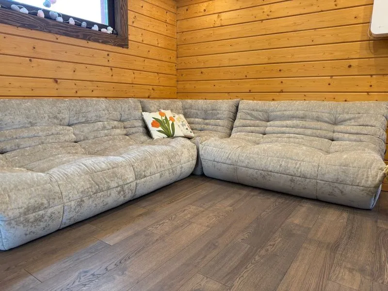 В углу сидеть удобно (переживала, что будет не используемая часть) единственное стык элементов хотелось бы чуть больше продумать. Но это правда чисто визуальная история. -