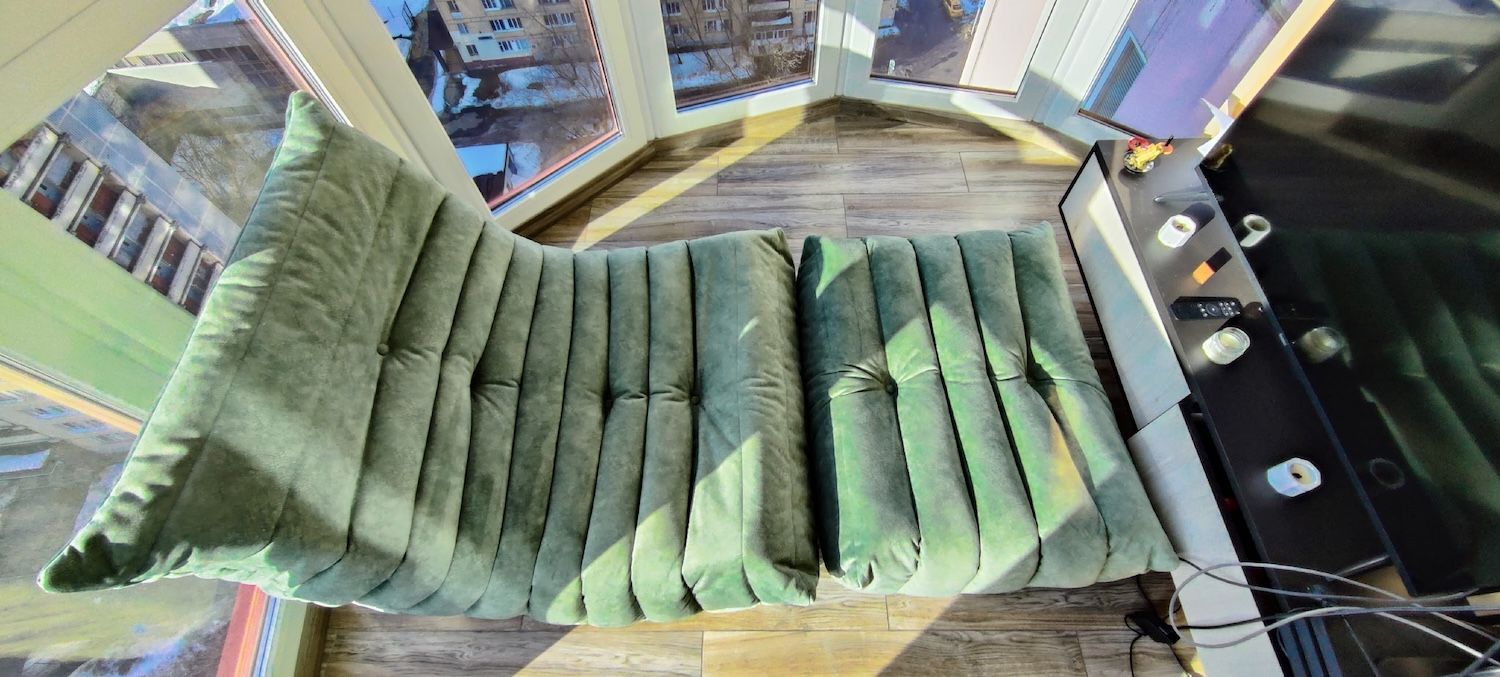В углу сидеть удобно (переживала, что будет не используемая часть) единственное стык элементов хотелось бы чуть больше продумать. Но это правда чисто визуальная история. -