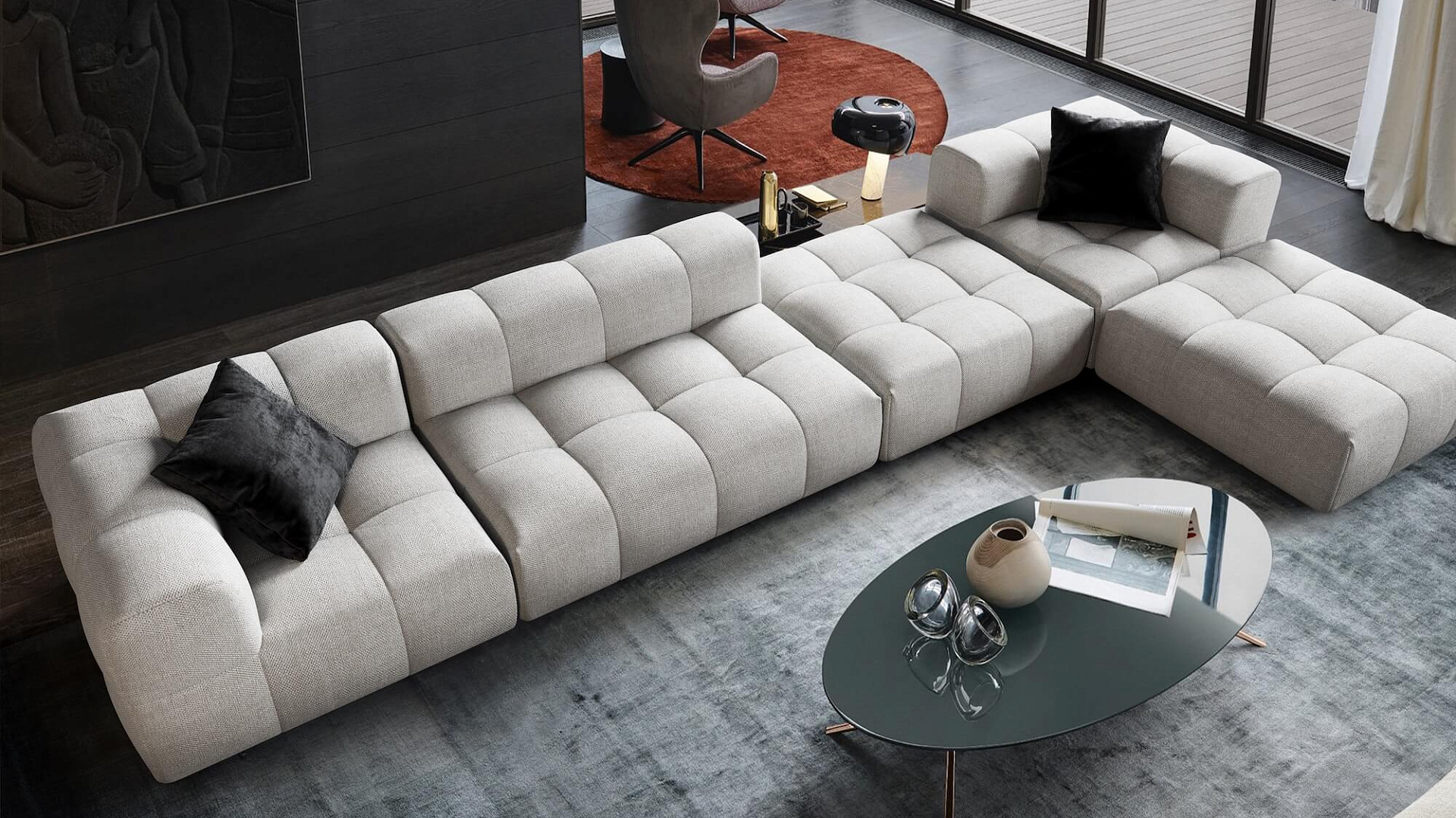 Благодаря этому мебель Gliver невероятно легкая, удобная и мобильная. А перестановка модулей позволяет быстро видоизменять облик дивана.